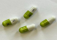 Ramipril 5mg Capsule: Capsules are light grey and green gelatin capsules, marked with “R” on the cap and “5” on the body.